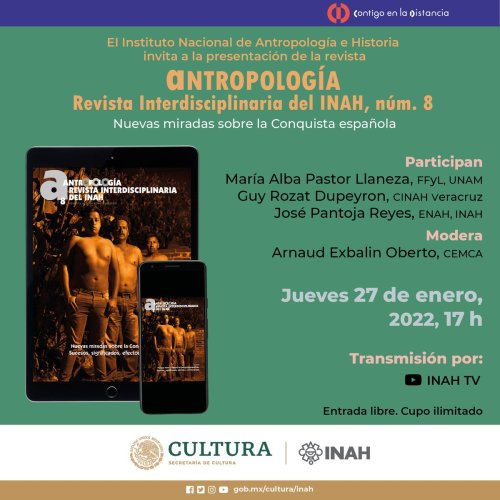 Presentación de Antropología, Revista Interdisciplinaria del INAH No. 8. Portada. Instituto Nacional de Antropología e Historia. Ciudad de México. 2022.