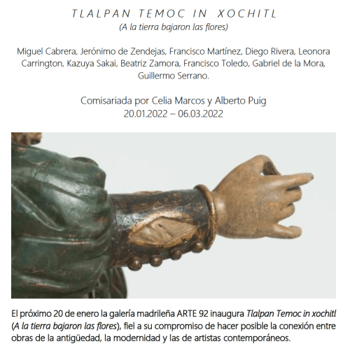 Tlalpan temoc in xochitl (A la tierra bajaron las flores). Exposición. Galería Arte 92. Madrid, España. 2022.
