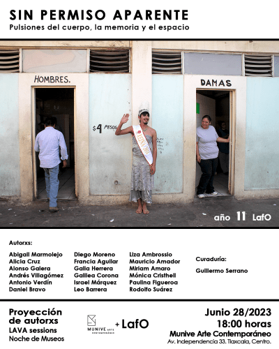 Sin permiso aparente. Pulsiones del cuerpo, la memoria y el espacio. Curaduría. Munive Arte Contemporáneo. Tlaxcala. México. 2023.